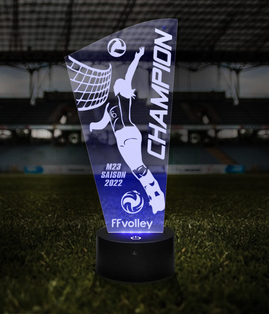 Découvrez la nouvelle ère des récompenses sportives avec nos Trophées Lumineux. Sur un socle lumineux tactile, chaque trophée devient une œuvre d’art illuminée, mettant en lumière les exploits de votre club. Grâce à une télécommande intuitive, personnalisez l’éclairage pour créer une ambiance unique à chaque célébration.